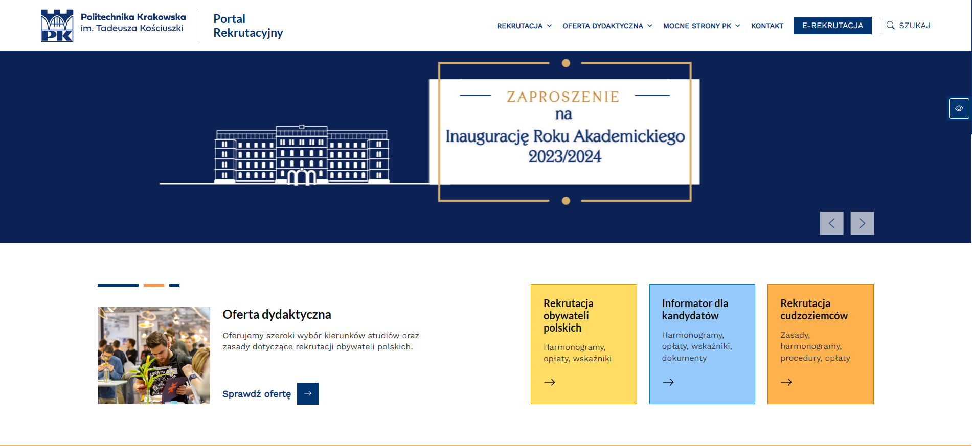 E-rekrutacja oraz informacje o kierunkach i procesie aplikacji dostępne są na stronie: rekrutacja.pk.edu.pl